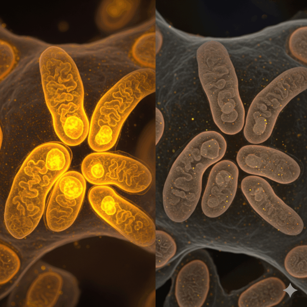 ミトコンドリアは、細胞内の「水力発電所」とも呼ばれる存在。食べ物から得た栄養をATPに変換し、エネルギーを生み出します。しかし、加齢やストレス、睡眠不足が続くと、ミトコンドリアの機能が低下。ATPが不足し、**エネルギー不足**の状態に陥ります。