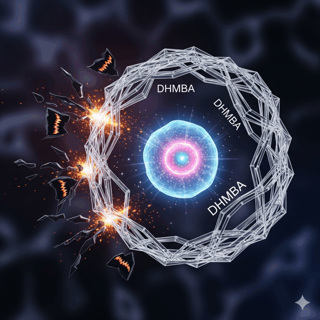 **DHMBA(デイエイチエムビイエー)**は、超悪玉活性酸素である**ヒドロキシラジカル**を無毒化する強力な抗酸化物質です。活性酸素は、ミトコンドリアを傷つけ、エネルギー生成を妨げる原因。DHMBAは、細胞を酸化ストレスから守り、ミトコンドリアの機能を高めます。