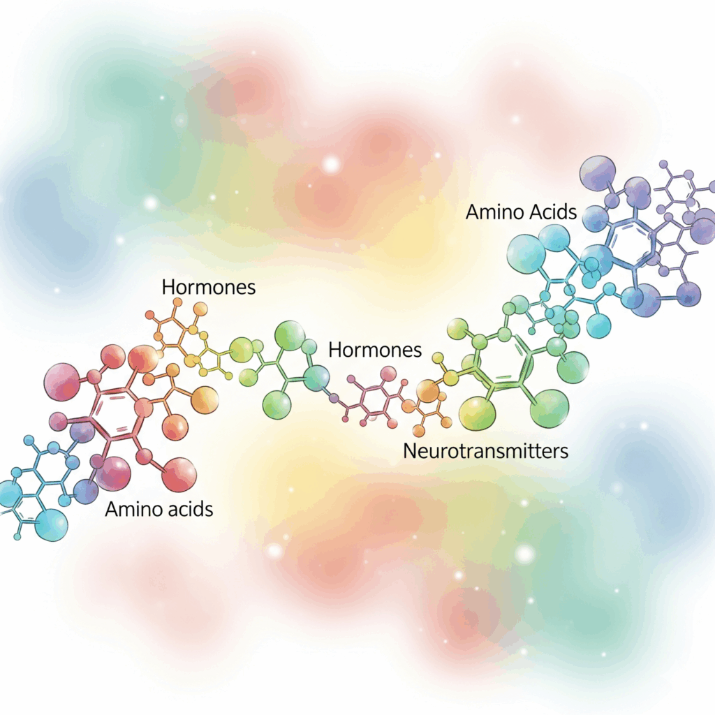 ホルモンや神経伝達物質はタンパク質(アミノ酸)から作られます。合成を担う酵素の働きが弱ると、気分の落ち込み・やる気の低下・入眠障害が強まることも。夕方以降のカフェイン量、睡眠中の血糖変動、マグネシウム不足など、見直せる点は意外に多くあります。