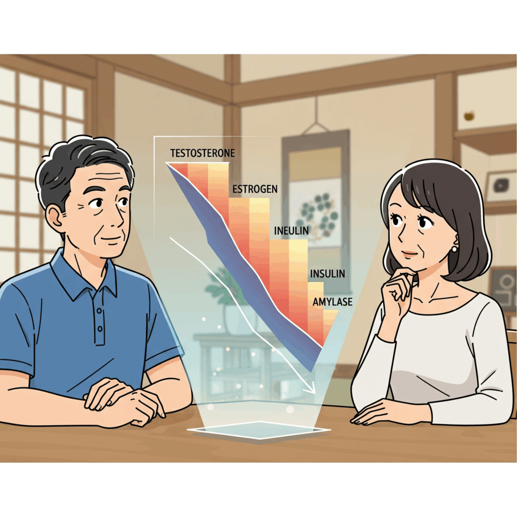 加齢やストレスでタンパク合成酵素が低下すると、ホルモン・酵素・神経伝達物質の生成が滞ります。これが不調の連鎖を生みます。漢方は体の根本から整える力を持っています。
