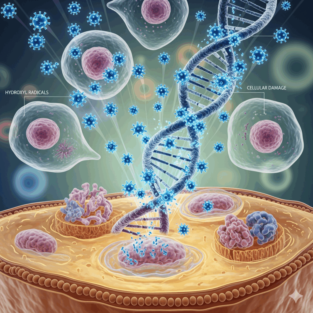ヒドロキシラジカルは、細胞のDNA・脂質・タンパク質を傷つけ、脳や体の老化・疲労の大きな原因に。