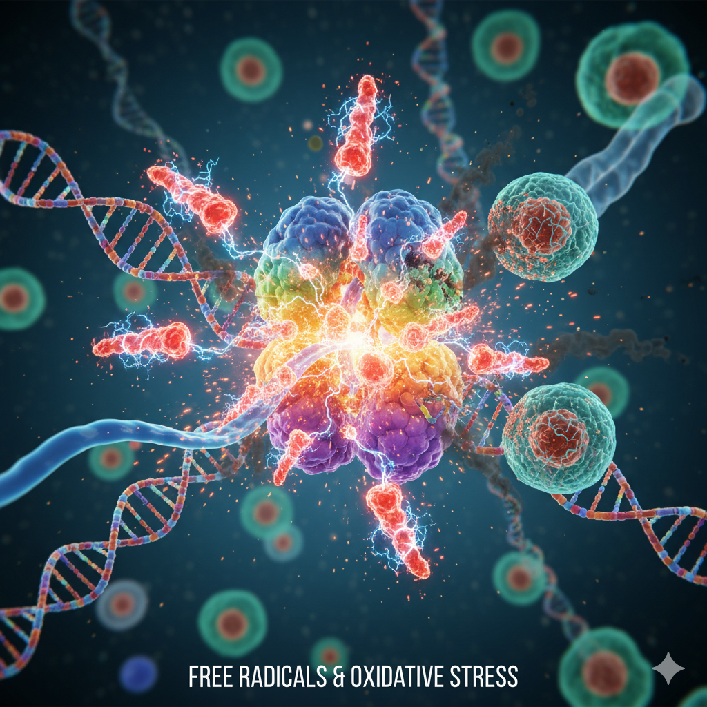 活性酸素の中でも、最も有害とされるのがヒドロキシラジカルです。この超悪玉活性酸素は、細胞膜、DNA、タンパク質を無差別に攻撃し、細胞を破壊します。