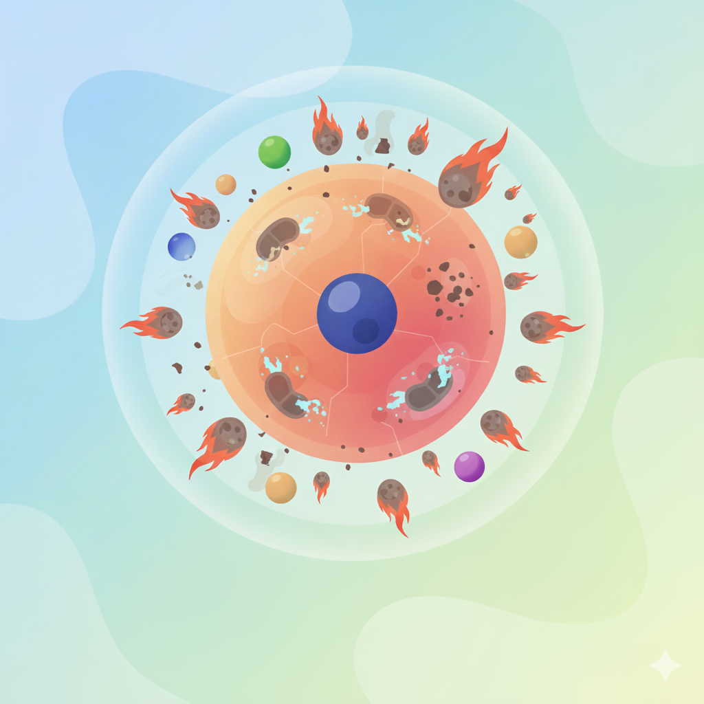 体内の酸化ストレス、ミトコンドリア機能、ホルモンバランス、炎症制御を多方面から同時ケア