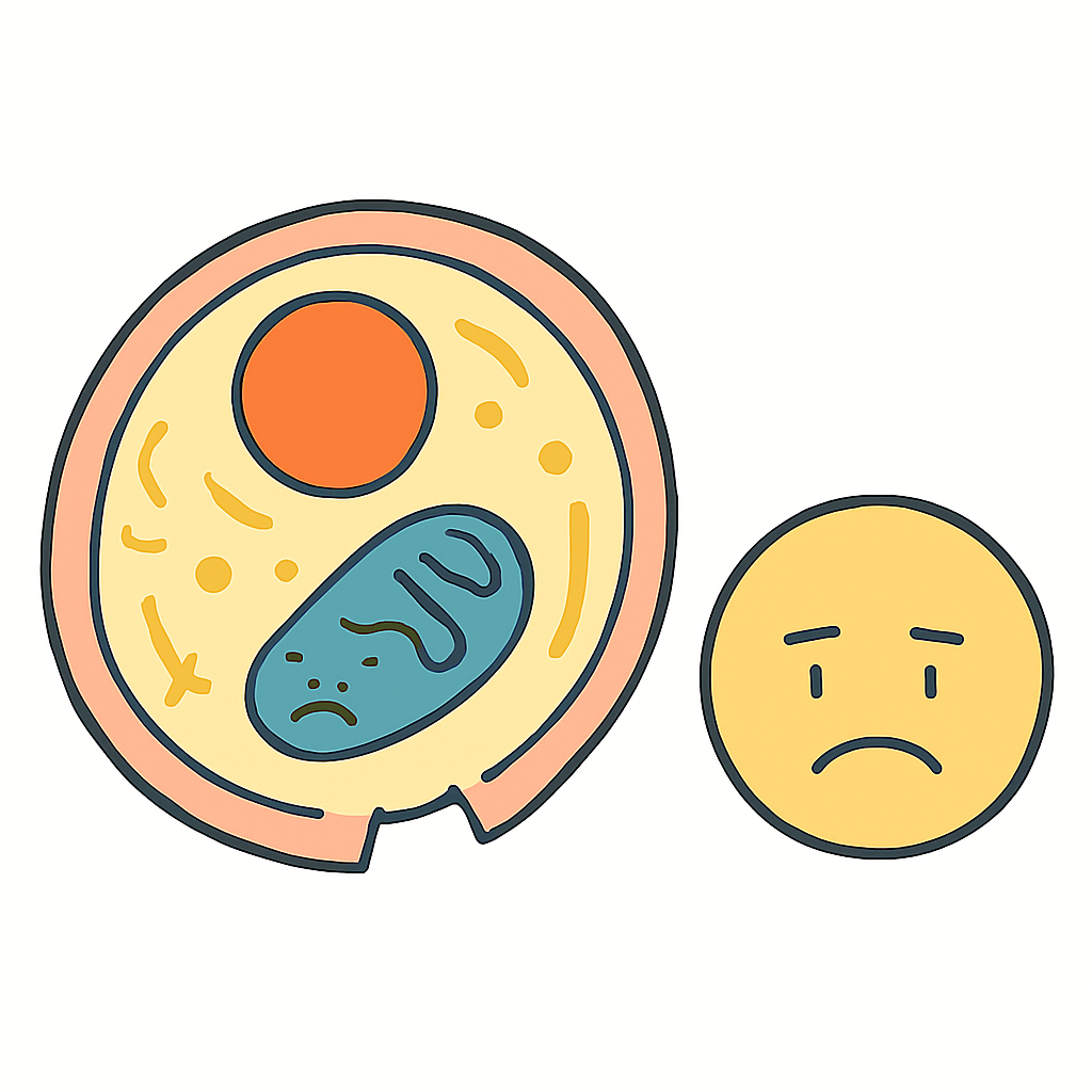 ミトコンドリアは細胞内でATP(エネルギー)を産生する「元氣の水力発電所」です。しかし、酸化ストレスや炎症、栄養不足などでミトコンドリアの機能が低下すると、全身のエネルギー不足に陥ります。