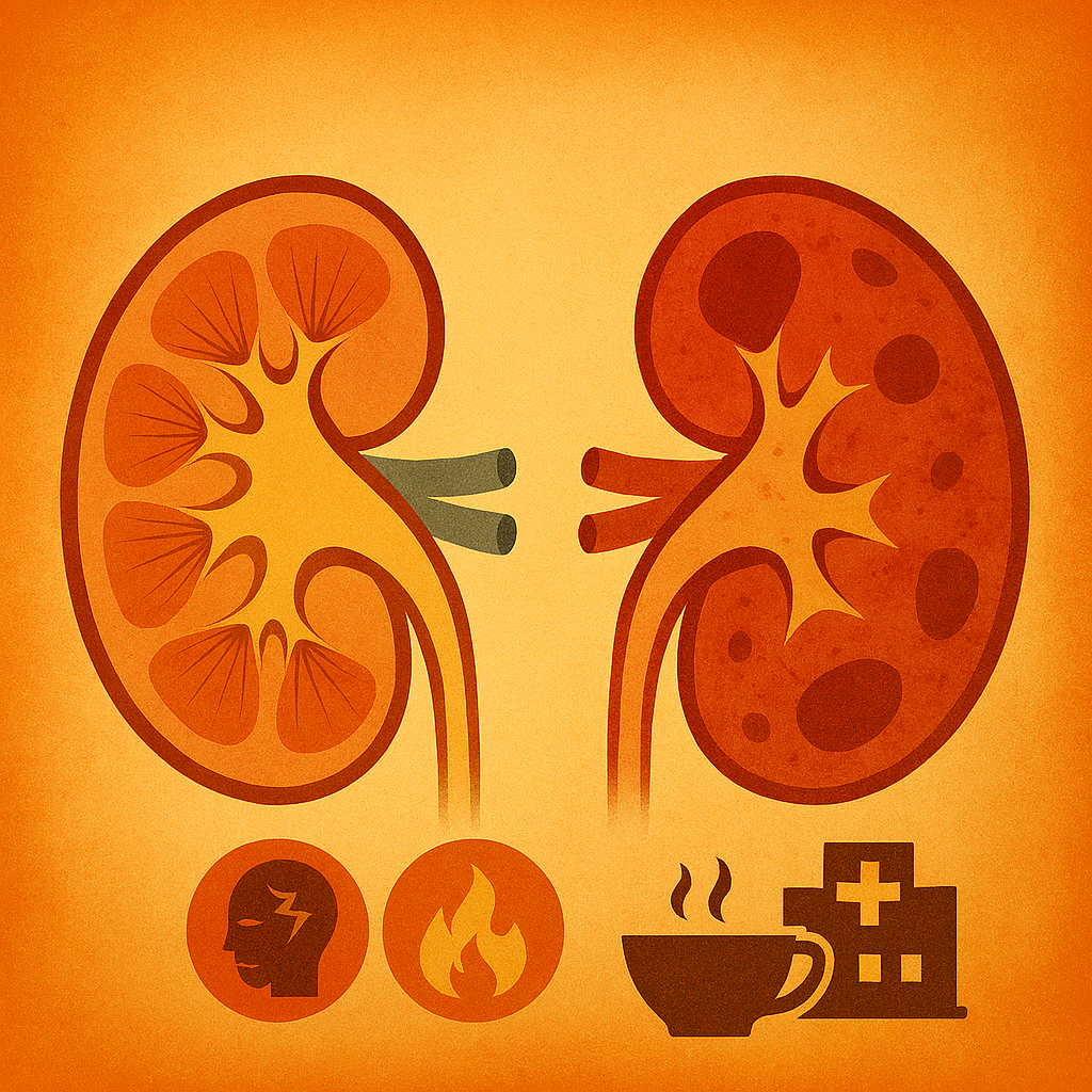 慢性的なストレスによって分泌されるコルチゾールは、血糖値を上昇させ、血圧を高める作用があります。これらの作用は腎臓に大きな負担をかけ、腎機能の低下を促進させます。