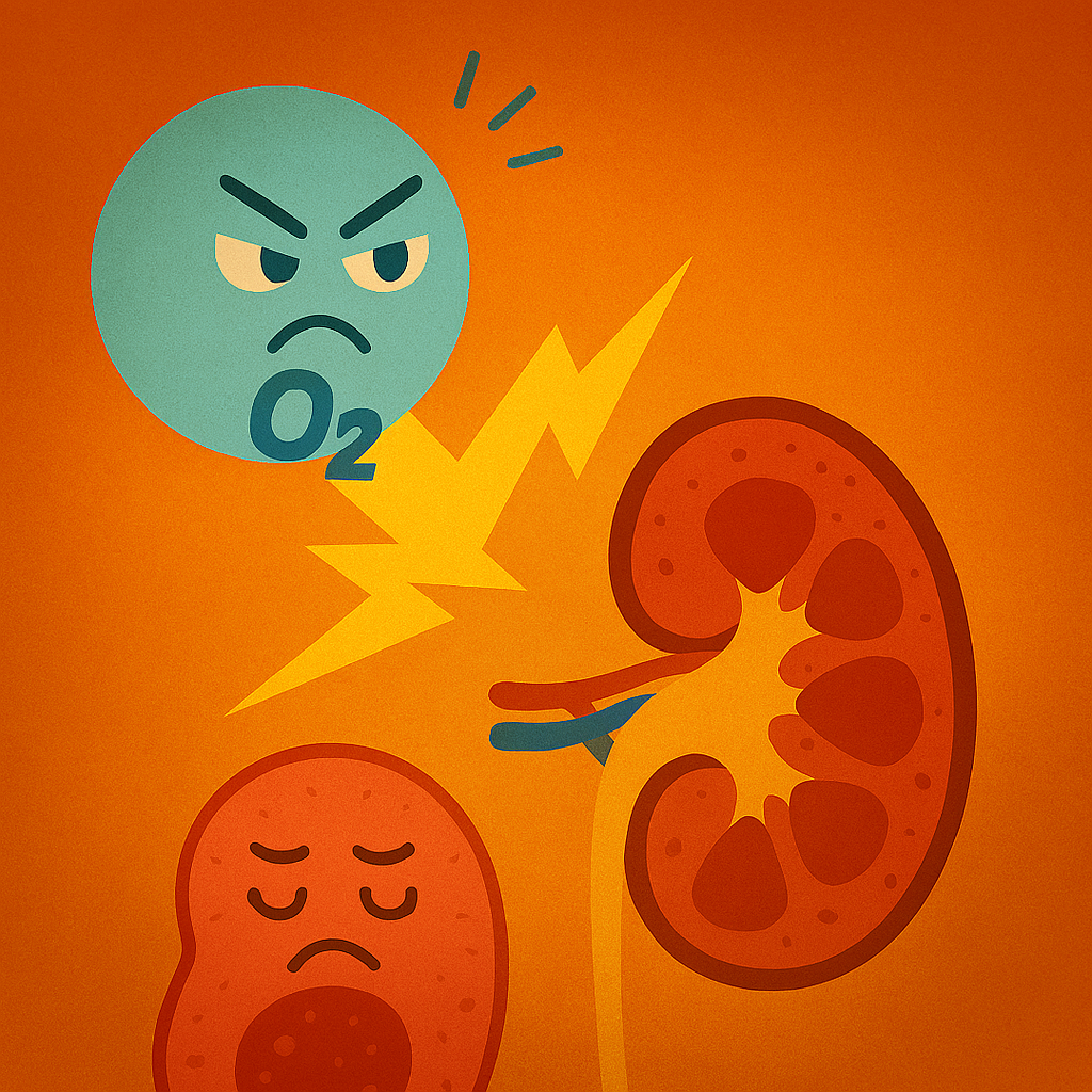 体内で最も毒性の強い活性酸素であるヒドロキシラジカルは、腎臓の細胞膜やDNAを直接攻撃し、腎機能の低下を引き起こします。特に糖尿病患者では、高血糖状態によってこの超悪玉活性酸素の産生が増加します。