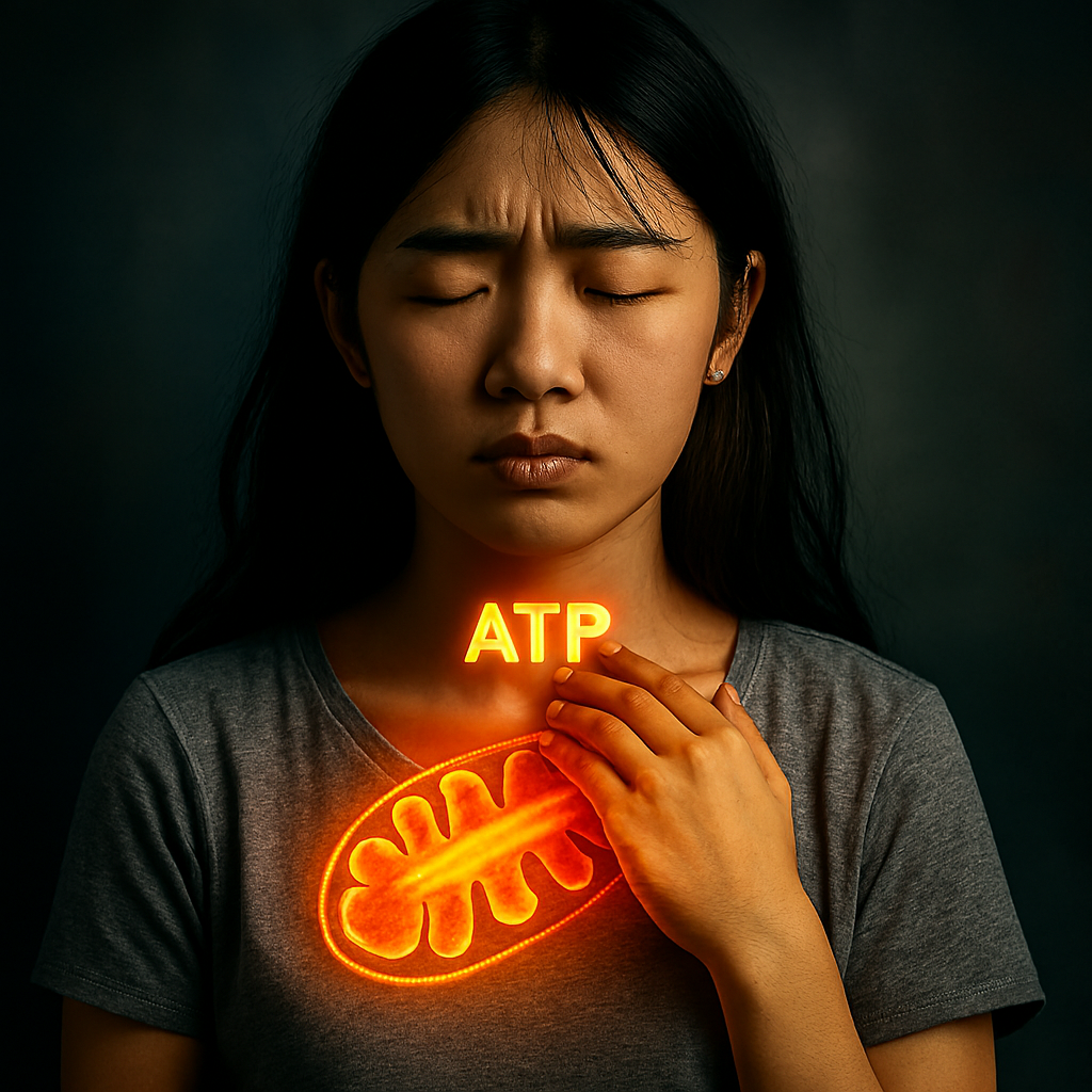 私たちの身体の細胞内にある「ミトコンドリア」は、エネルギー源であるATPを作り出す「元氣の水力発電所」です。しかし、上記の超悪玉活性酸素やコルチゾールの過剰分泌は、このミトコンドリアにダメージを与え、ATP・エネルギー不足を引き起こします。結果として、身体全体、特に神経系や筋肉の機能が低下し、喉の違和感を調整するエネルギーも不足。当薬局では、漢方を通じてミトコンドリアを活性化し、根本的な活力の回復を目指します。