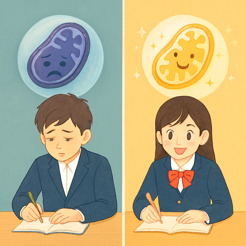 受験期や思春期の不調は、「気持ちの持ちよう」だけでは解決できない、細胞レベルの問題が潜んでいることが多いのです。脳内の酸化ストレス、ストレスホルモンの過剰分泌、ミトコンドリアのエネルギー不足、腸内環境の乱れ。これらすべてが複雑に絡み合っています。