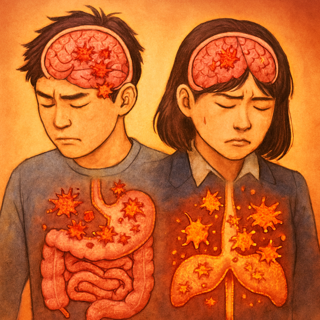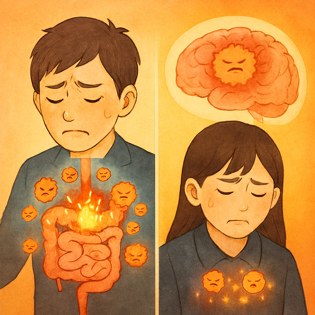 ストレスや食生活の乱れは、体内で炎症性サイトカインという物質を増加させます。これが慢性化すると、「なんとなく体がだるい」「頭痛が続く」「気分が晴れない」といった、はっきりしない不調が長引く原因になります。特に腸内環境の悪化は、炎症性サイトカインの発生源。腸と脳は密接につながっており、腸の炎症が脳の不調を引き起こす「腸脳相関」という仕組みが注目されています。