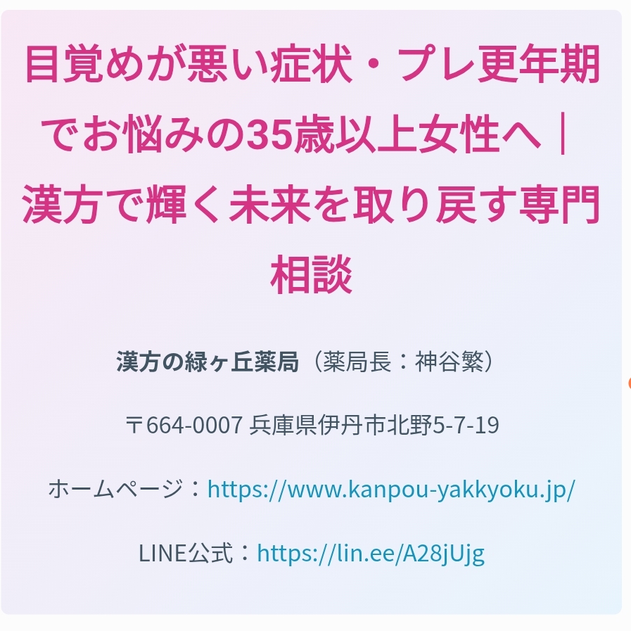 目覚めが悪い症状・プレ更年期でお悩みの35歳以上女性へ|漢方で輝く未来を取り戻す📅2025/11/28GS