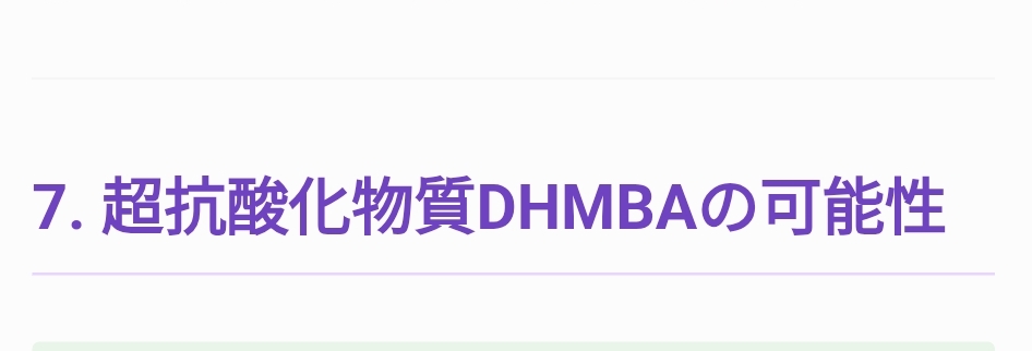 DHMBA(デイエイチエムビイエイ)は、従来の抗酸化物質では中和困難とされていた超悪玉活性酸素ヒドロキシラジカルを無毒化する可能性が注目されている成分です。この超抗酸化物質により、脳内の酸化ストレスを軽減し、神経細胞を保護することで、クリアな思考と自然な睡眠リズムの回復が期待されます。最新の研究成果を取り入れた、新しい健康アプローチです。