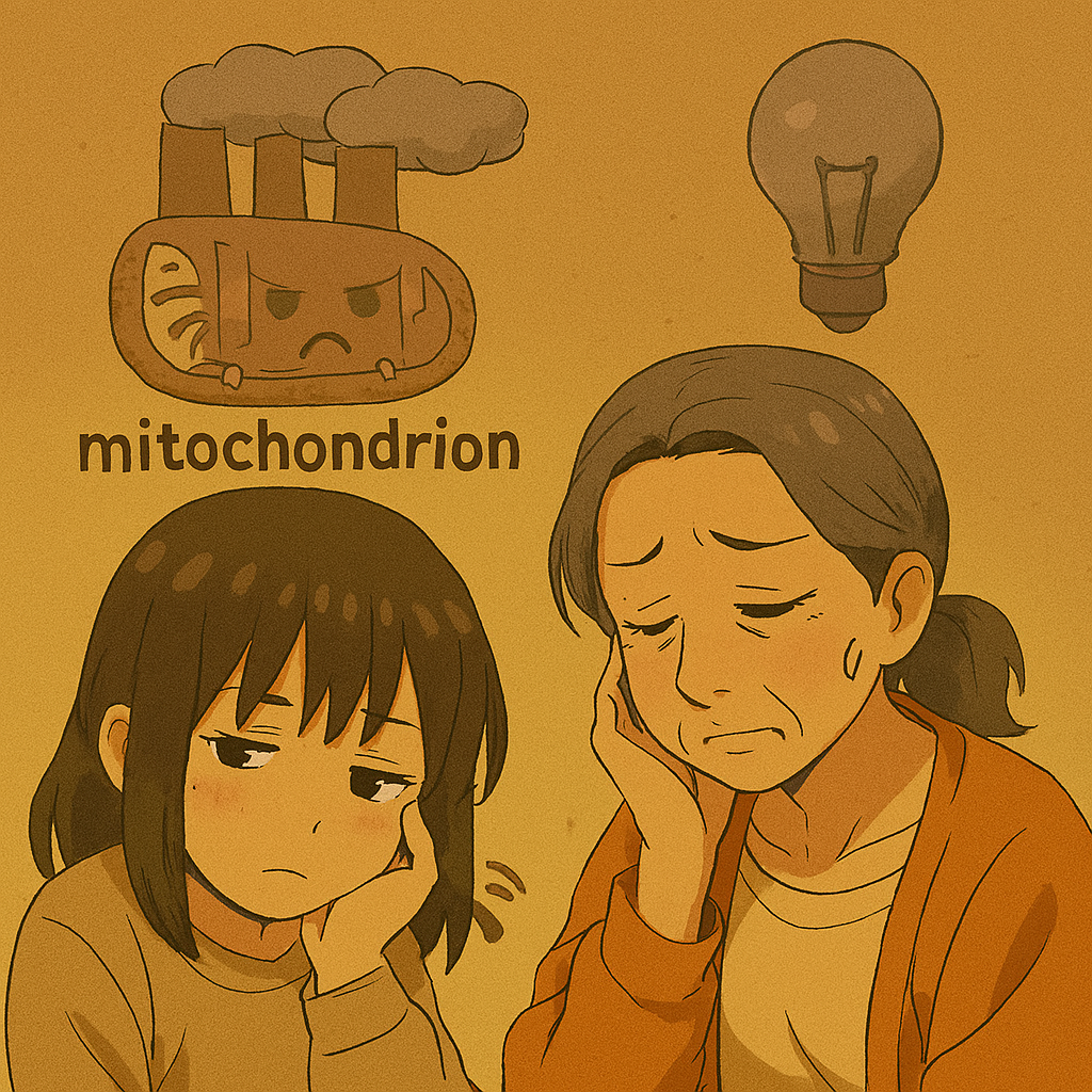 ④ ミトコンドリアのATP低下=“元気の発電力”不足