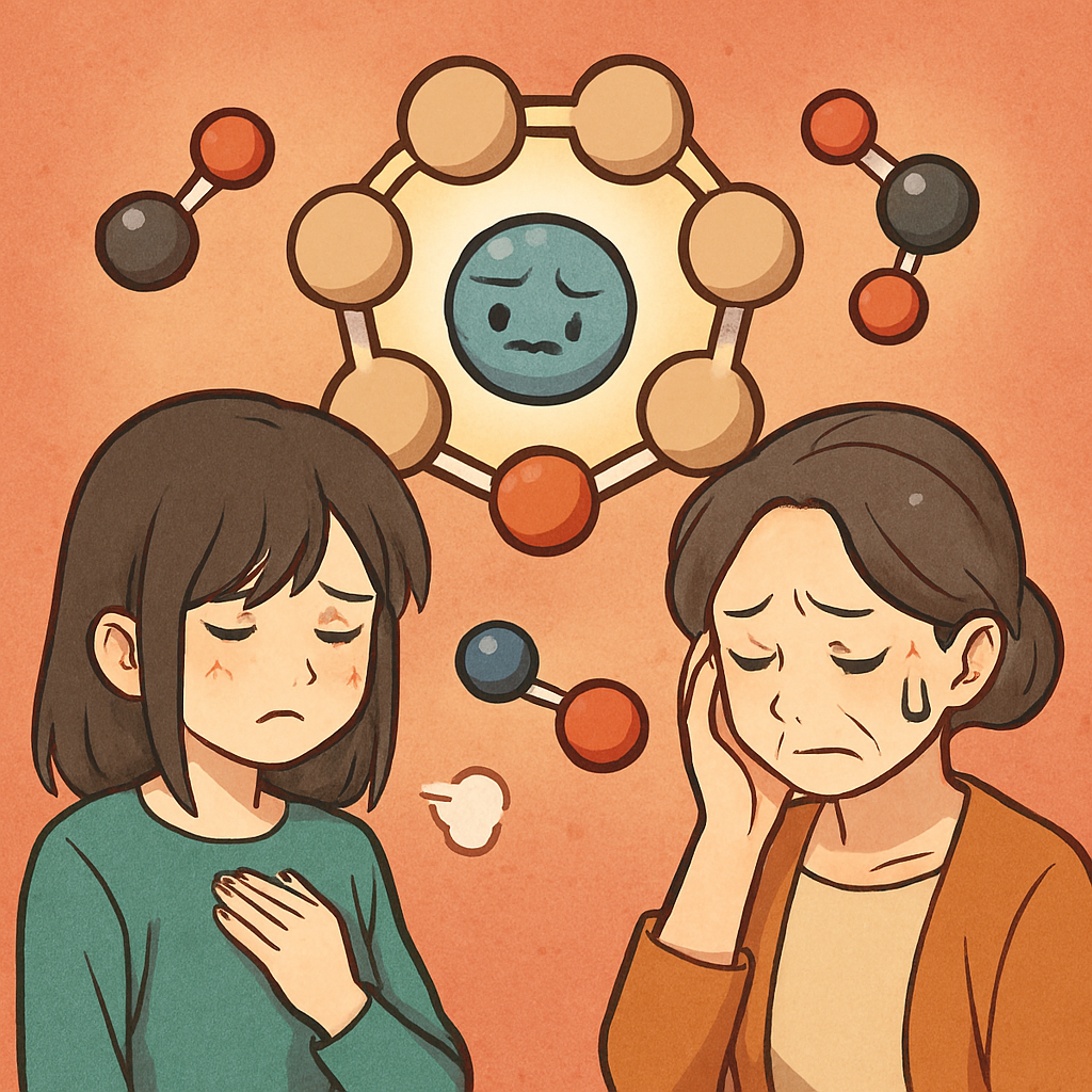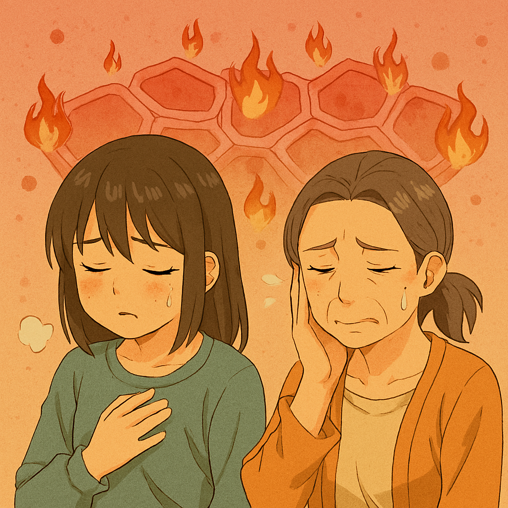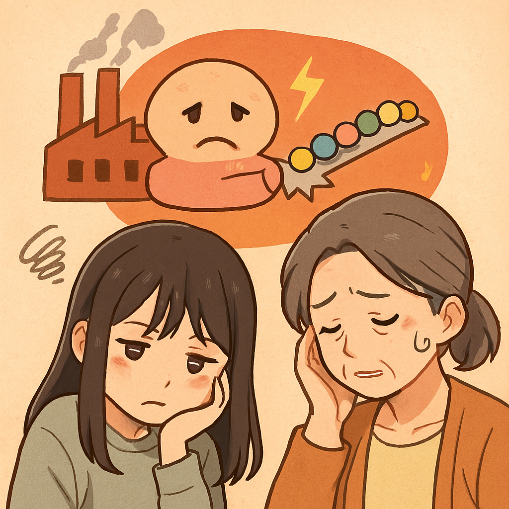 コルチゾール(ストレスホルモン)は短期的には防御反応ですが、分泌が続くと筋肉・脳・腸に負担をかけます。特に女性はホルモンバランスとリンクしており、更年期の疲労悪化に直結します。