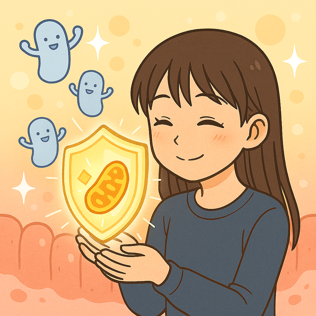 ミトコンドリアは細胞の中にある小さな器官で、「エネルギーの発電所」とも呼ばれます。私たちが食べた栄養素を、体が使えるエネルギー(ATP)に変換する重要な役割を担っています。