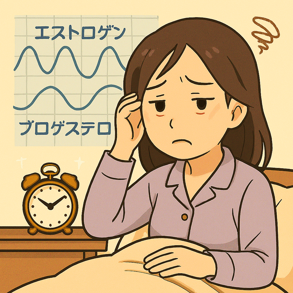 女性ホルモン(エストロゲン)は30代半ばを過ぎると急激に減少。その変化で体温・自律神経・睡眠ホルモンのバランスが乱れ、「朝の重だるさ」が現れます。