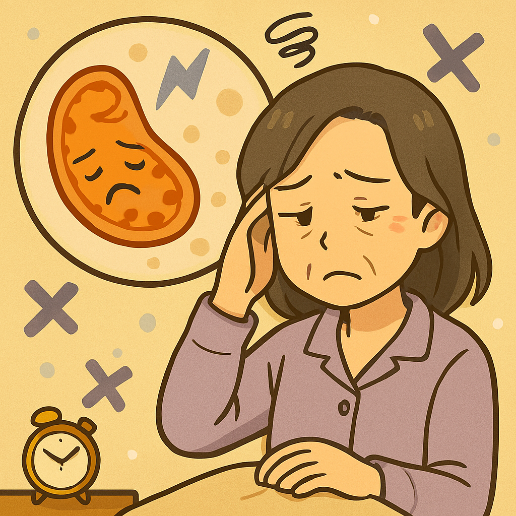「体内の発電所」と呼ばれるミトコンドリアが疲れると、ATP(エネルギー)が作れず、朝スッキリ動けません。女性ホルモン低下と酸化ストレスのダブルパンチが影響します。