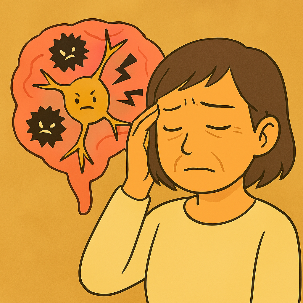 炎症性サイトカインが過剰になると、脳に「休め」というシグナルを送り続け、強い倦怠感や気分の落ち込みを引き起こします。炎症が治まらない限り、本当の意味での休息は訪れません。