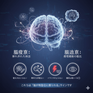 1.「寝つきが悪い」「朝がつらい」…その原因は脳疲労かもしれません 布団に入っても考えごとが止まらない。朝起きてもすっきりしない。その背景には「脳疲労」や「脳過労」が潜んでいる可能性があります。 現代人は情報過多・ストレ […]