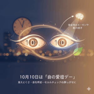 ◆10月10日は「目の愛護デー」。夕方からショボショボするのは“目の夏バテ後遺症=アイフレイル”かもしれません。脳疲労やストレスホルモン、エネルギー不足を整えて、これからの毎日をもっと快適に。漢方の知恵でサポートします。 […]