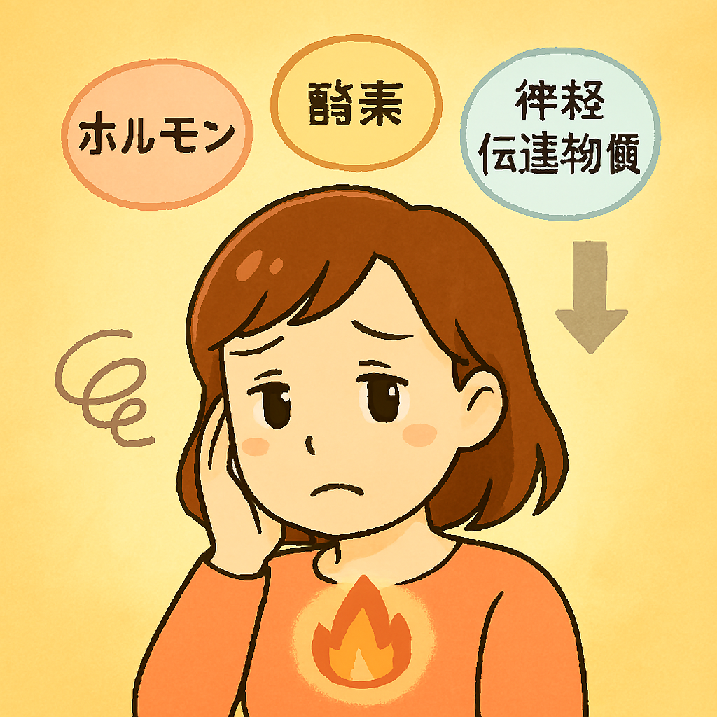 この変化は脳の神経伝達物質にも影響し、気分の波・イライラ・不安感として現れやすくなります。