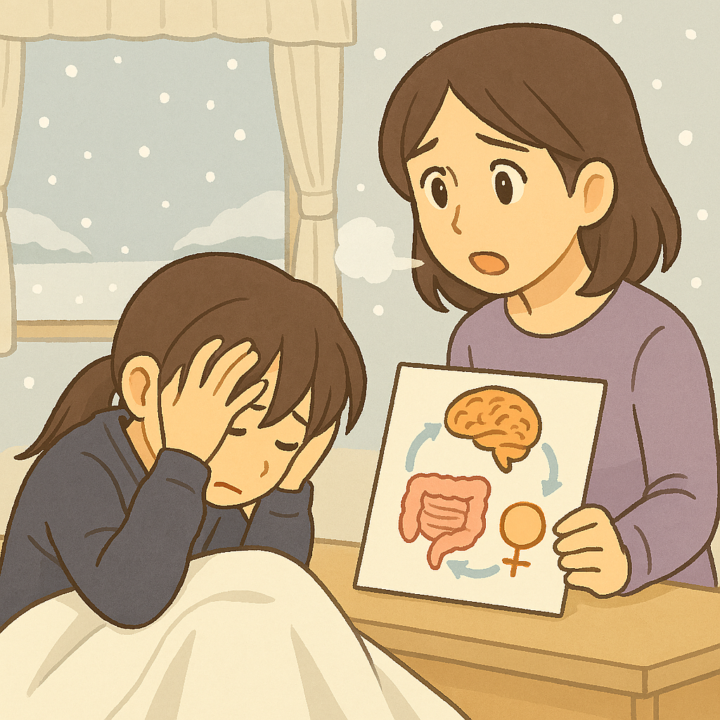 寒い季節は、冷えによる血流低下と自律神経の乱れが重なり、もともと脳疲労を抱えている思春期女子の不調を強めやすい時期です。