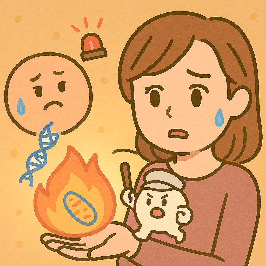 ミトコンドリアが傷つくと、環状DNAが細胞外へ漏れ出し、それを免疫が「敵」とみなすことがあります。炎症性サイトカインが増え、慢性的な炎症状態に。肩こりや頭重感、気分の波の裏には「微炎症」が潜んでいます。