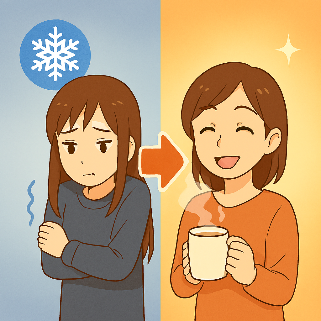 💬「そうそう、冷えや生理痛で毎日つらくて、顔色も悪くて…。でも漢方って苦くて続けられないと思ってたのよね」