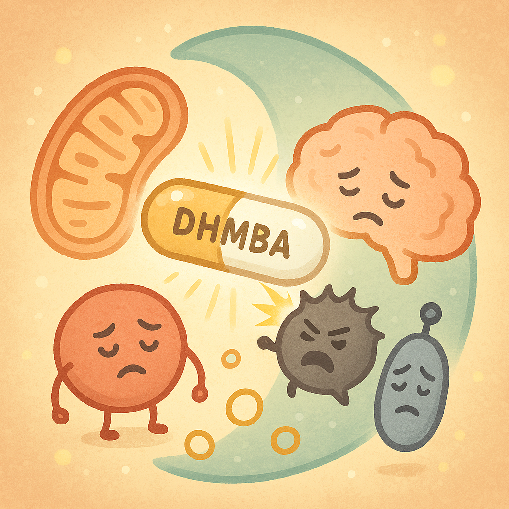 DHMBAは、超悪玉活性酸素ヒドロキシラジカルを選択的に無毒化し、ミトコンドリア内の活性酸素を減らすことでATP産生能をサポートすると期待されている超抗酸化物質です。