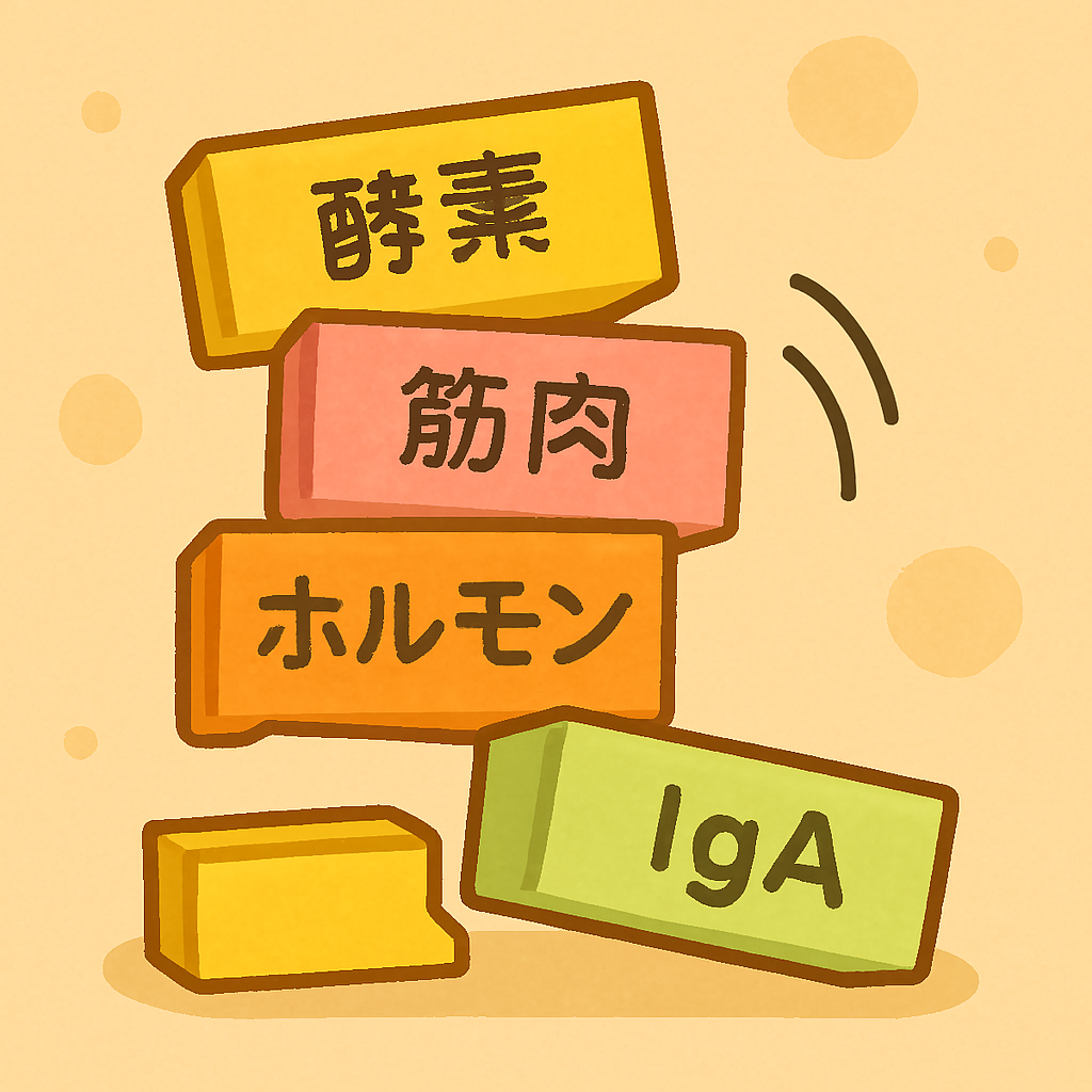 ããã³ã³ããªã¢ç²åŒãæ é€äžè¶³ãç¶ããšãã¿ã³ãã¯åæé µçŽ ã®åããèœã¡ãæé žåé µçŽ ã»çè(æ§é ã¿ã³ãã¯)ã»ãã«ã¢ã³ã»ç¥çµäŒéç©è³ªã»èŒžéã¿ã³ãã¯ã»é²åŸ¡ã¿ã³ãã¯(sIgA)ãªã©ãå°ããã€äžè¶³ããŠãããŸãã