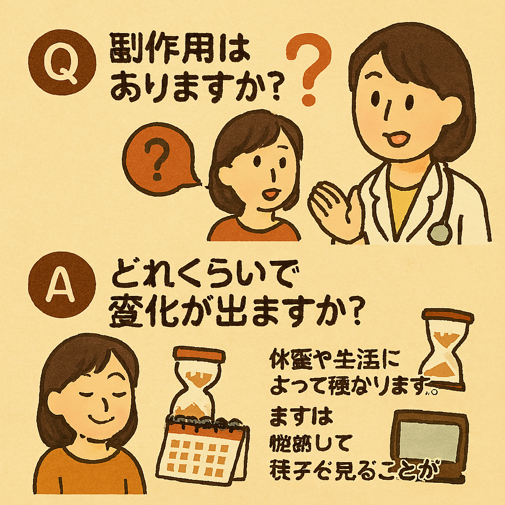 A:個人差があります。気になる症状があればすぐにご相談ください。