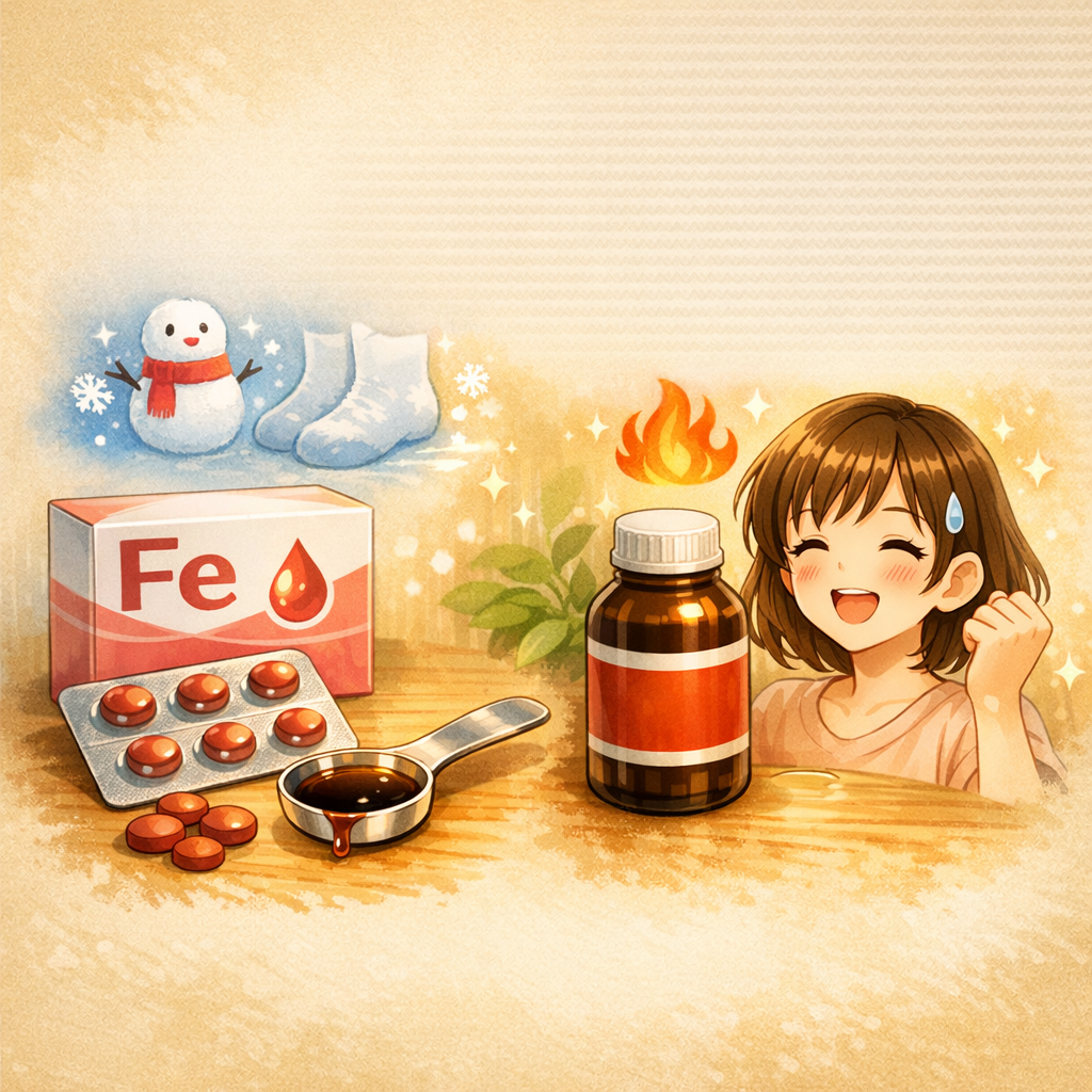 ⑦ 一般的な鉄剤と違い、胃腸に負担をかけずに「血そのものの質と量」を整えていく考え方なので、鉄剤が続かなかった方にも検討しやすい漢方です(鉄剤が不要になるわけではありません)。