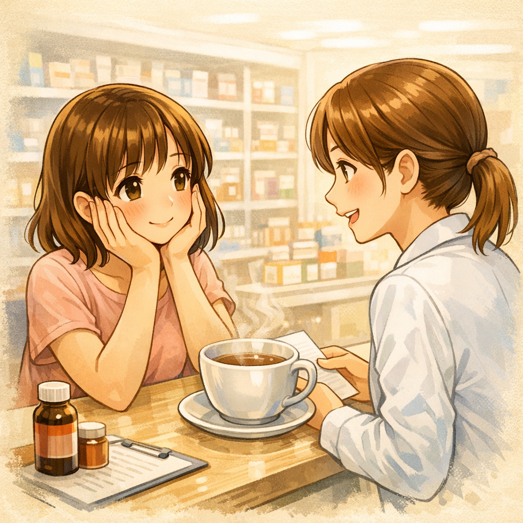 漢方の緑ヶ丘薬局では、婦宝当帰膠を含めた婦人科系の漢方相談を、1対1でじっくりお受けしています。