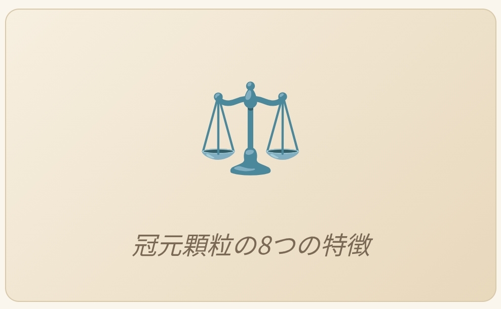 名前の「冠元」は、冠状動脈(心臓を養う血管)の「冠」と、元気の「元」から来ており、血のめぐりを根本からサポートするというコンセプトを体現しています。